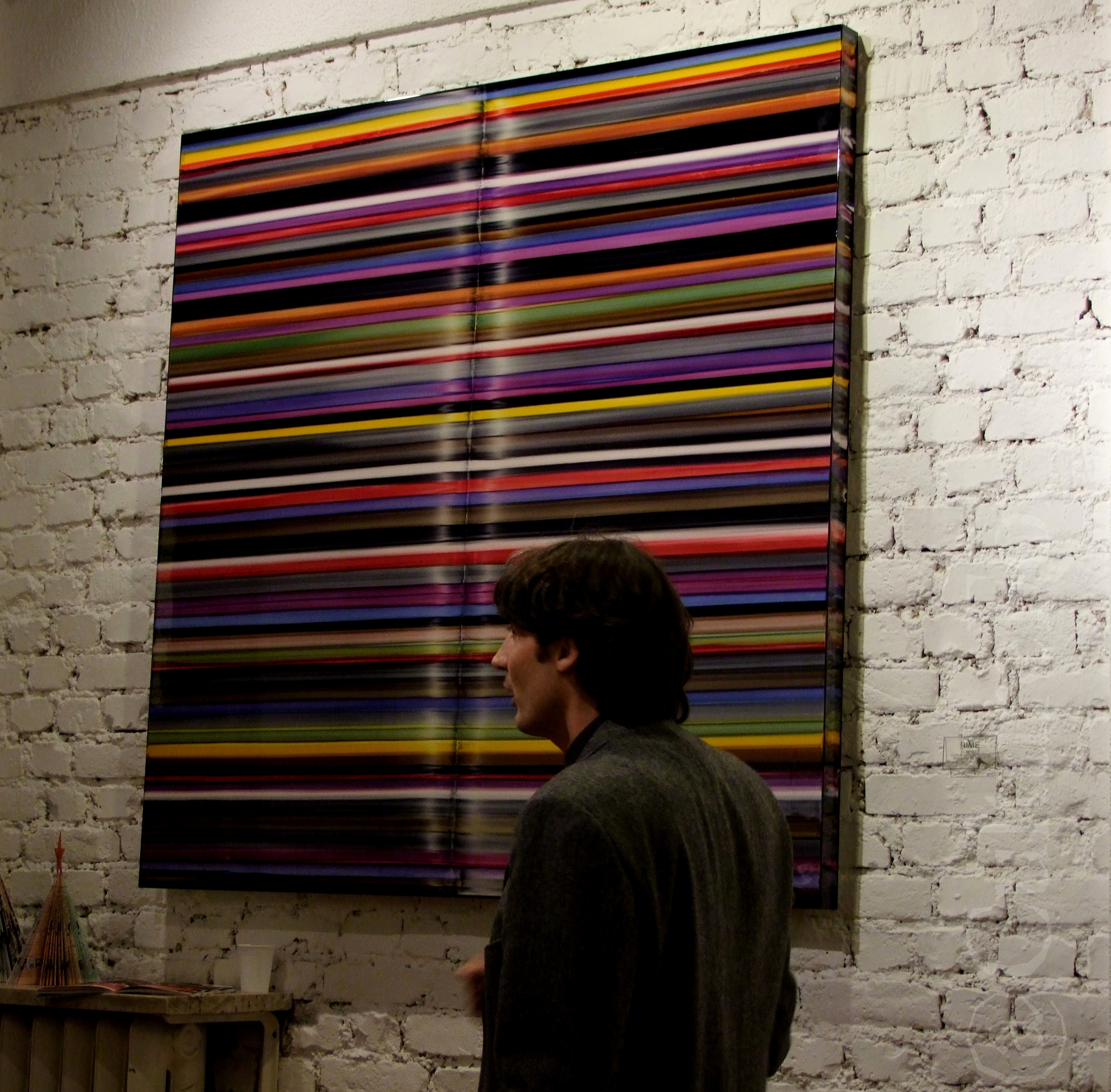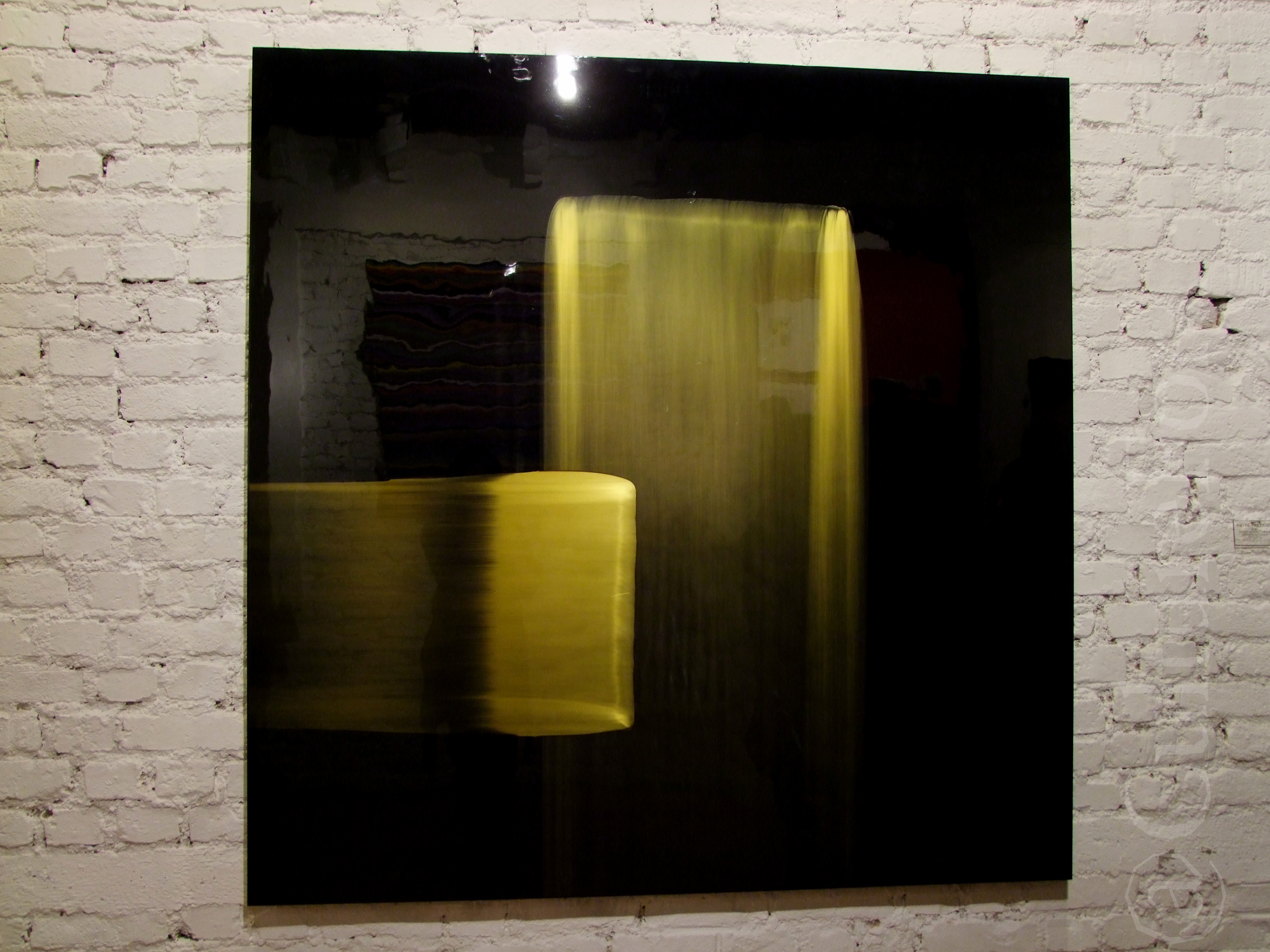 Ci sono dei tocchi di luce nelle opere di Lombardini che stimolano il nostro occhio, il quale riconosce una tridimensionalità del quadro che in realtà non esiste. Questa luminosità intrinseca all’opera ci invita ad avvicinarci, per tentare di capire cosa abbiamo davanti; improvvisamente accade una cosa particolare: siamo talmente vicini al quadro che il nostro respiro appanna la superficie, incliniamo la testa a destra e a sinistra, e vediamo l’opera mutare. Ed è in questo momento che riconosciamo il nostro riflesso: siamo noi, appartenenti al mondo esterno, che guardiamo l’opera ma, al tempo stesso, siamo all’ interno di essa, e possiamo osservare il mondo lì riflesso.