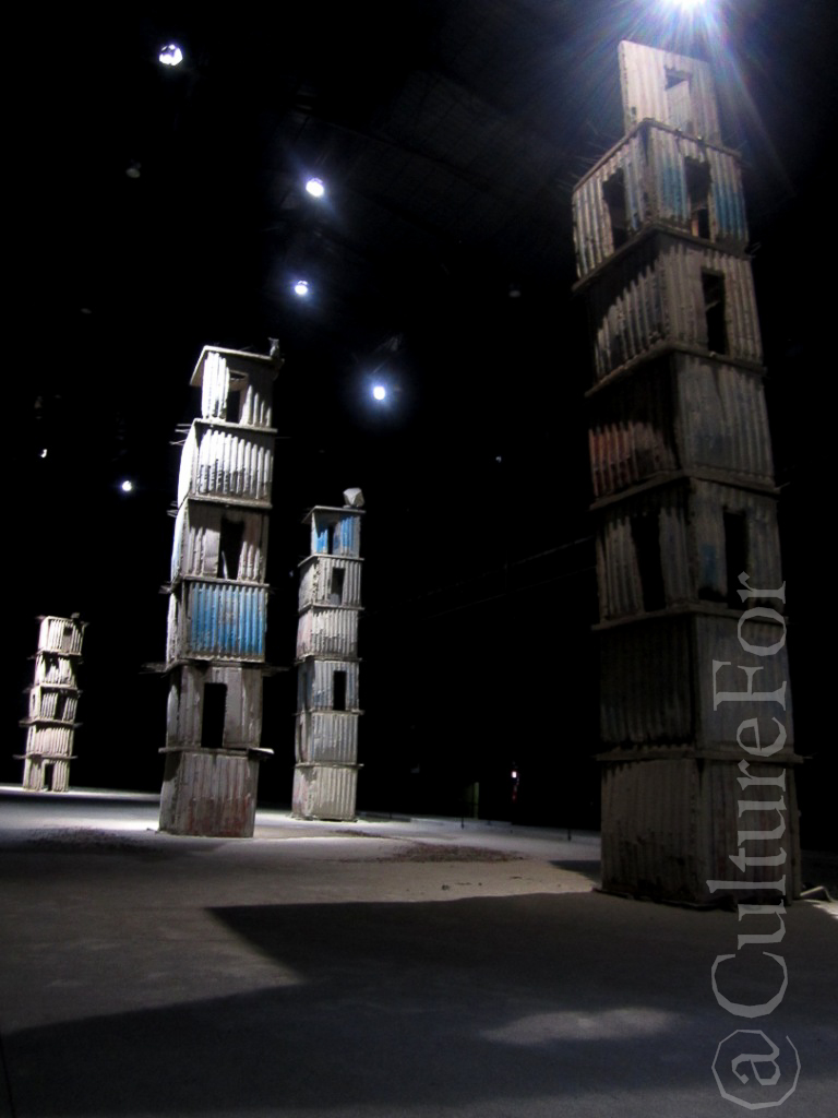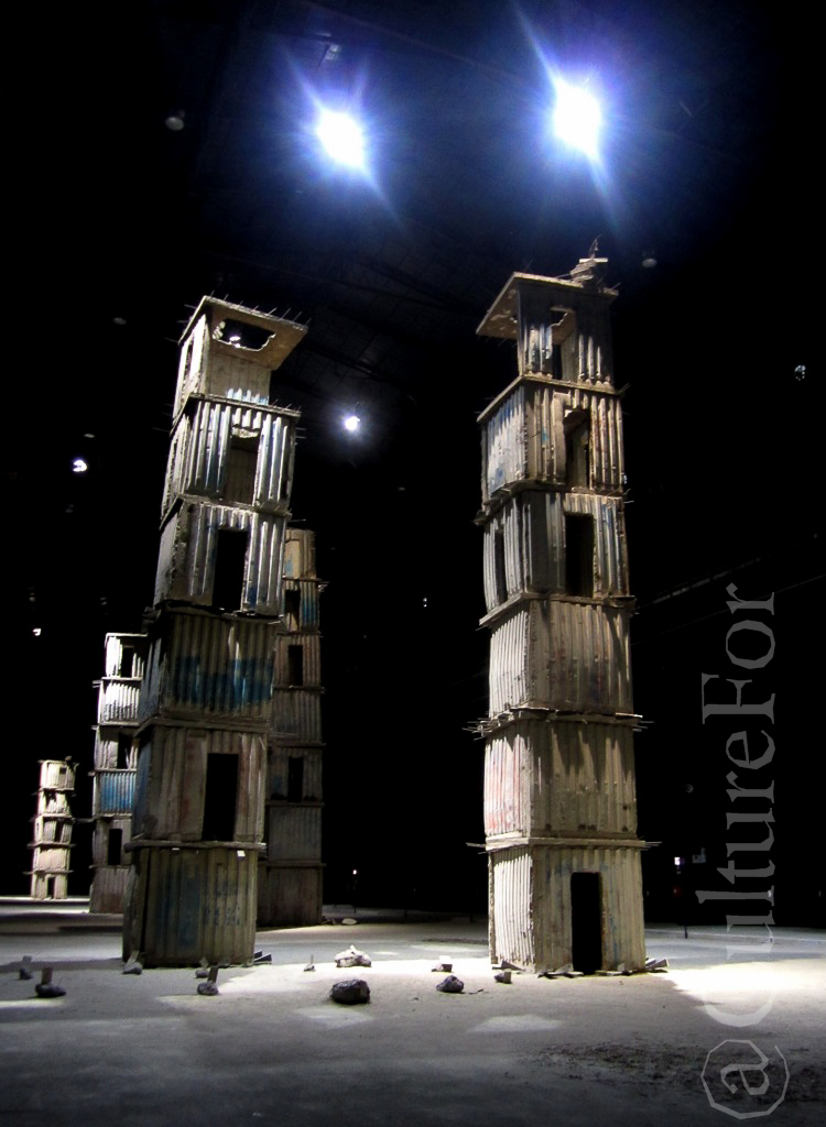 Le sette imponenti e, a prima vista, pericolanti torri sono l’interpretazione della religione ebraica, delle macerie dell’Europa in seguito alla Seconda Guerra Mondiale, le rovine del nostro presente.