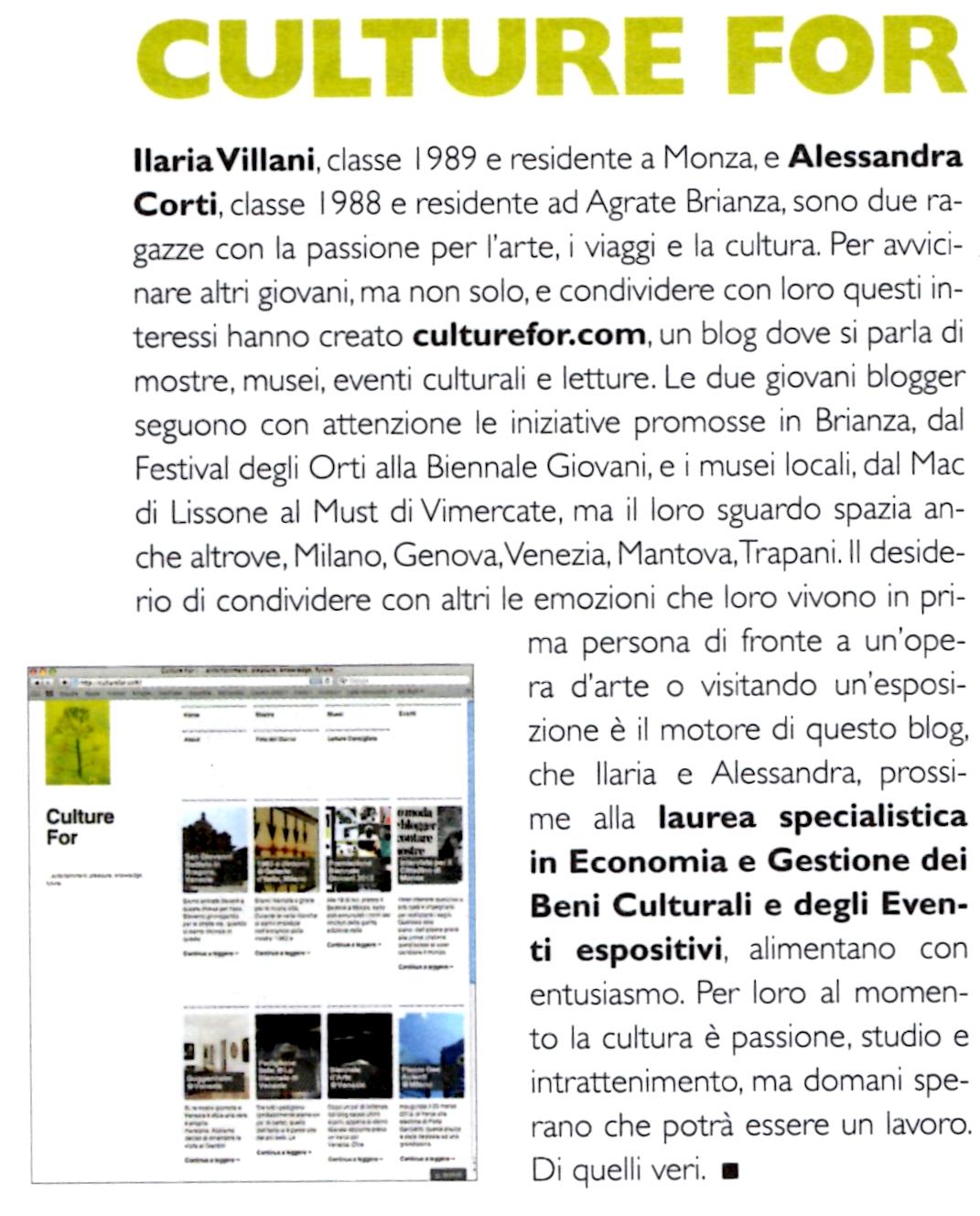 2 pensieri riguardo “Culture For sulla rivista Vivere