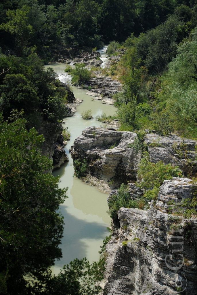 Affacciandosi dal ponte di Diocleziano è possibile ammirare queste conformazioni geologiche che ricordano, in piccolo e alla lontana, i famosi canyon americani. Questa particolare formazione è dovuta all’erosione del fiume Metauro, che muovendosi in maniera vorticosa e trasportando detriti, ha dato origine a queste cavità tondeggianti, denominate appunto Marmitte.