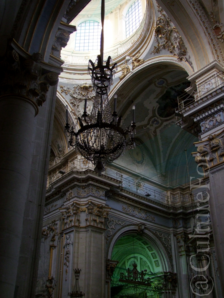 La struttura che vediamo oggi non è l’originale, ma il risultato di diverse ricostruzioni avvenute in seguito a diversi terremoti: 1542, 1613, 1693 e 1848. Ci sono tracce dell’esistenza di questa chiesa già a partire dal 1090. Le tante decorazioni esterne che già avevamo incontrato a Noto, questa volta non mettono in ombra l’interno. Capitelli, affreschi, lampadari di cristallo arricchiscono il duomo, senza però disturbare troppo l’occhio del visitatore.