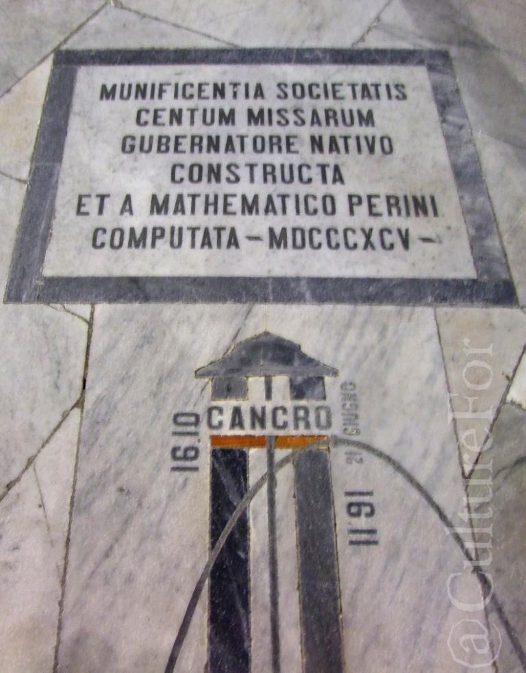 Interessante la meridiana solare situata proprio davanti all’altare, realizzata nel 1895 dal matematico Armando Perini.