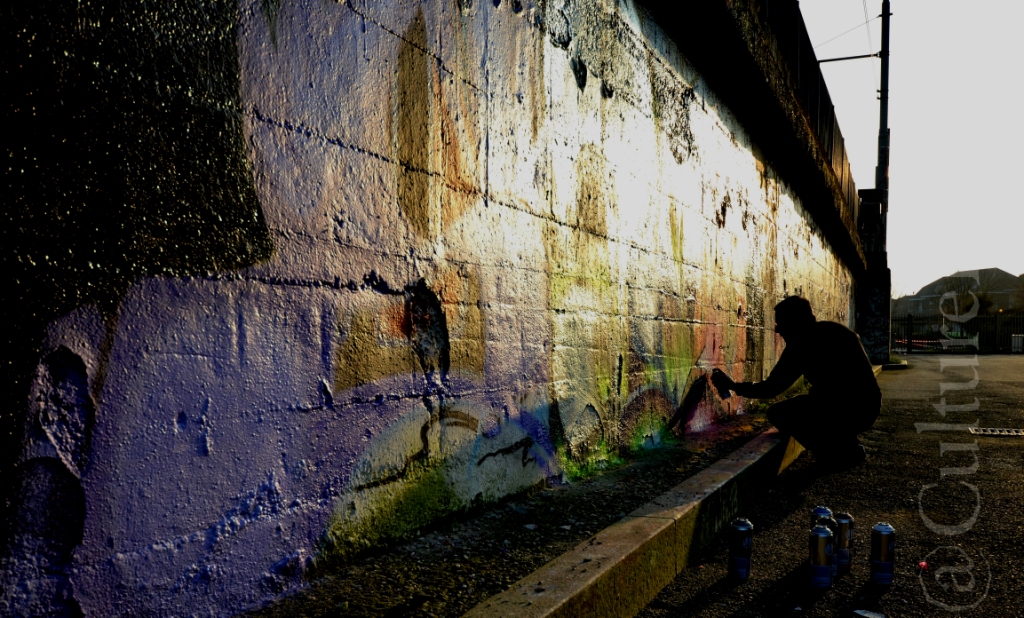 Durante il nostro giro, abbiamo notato un ragazzo all’opera e, così, siamo rimaste ad osservarlo, affascinate dal modo in cui disegnava e colorava con le bombolette. Abbiamo sfruttato il momento per scattare qualche fotografia. Parlando insieme a lui, riguardo alla legalità di quei disegni, ci ha parlato di un “tacito accordo”: quella zona, in poche parole, è dedicata totalmente a loro.