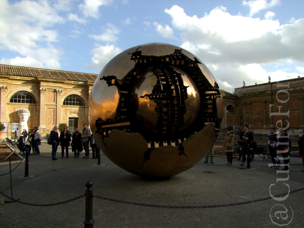 Altra opera di Arnaldo Pomodoro incontrata durante i nostri “viaggi”…questa volta siamo a Roma, nel cortile della Pigna, all’interno dei Musei Vaticani per la precisione.