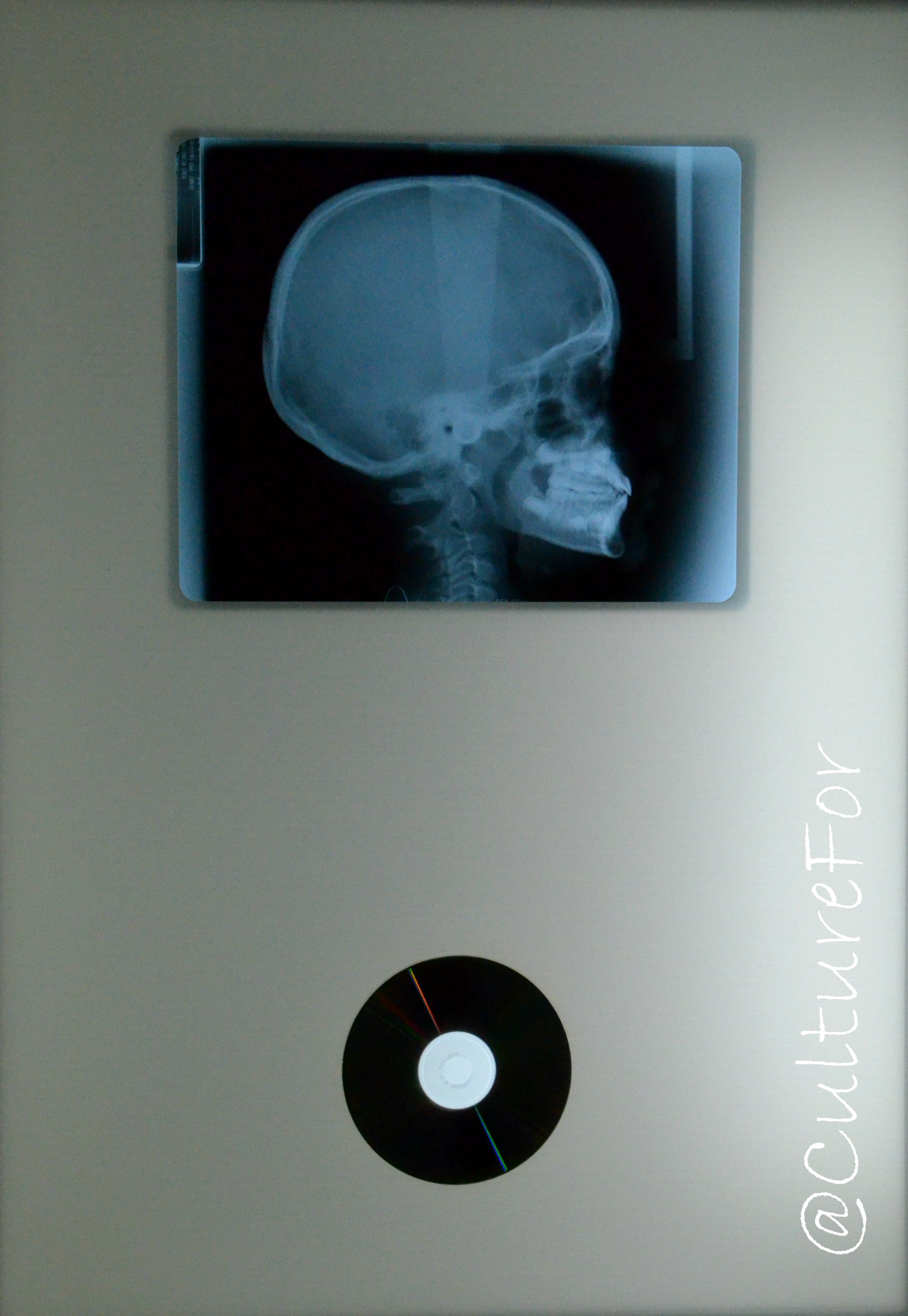 E a proposito di digitale, ecco Luca Misciosa con la sua opera “IPod” dove in una semplice radiografia sono racchiusi i i simboli dell’epoca contemporanea (cellulare, tablet etc).