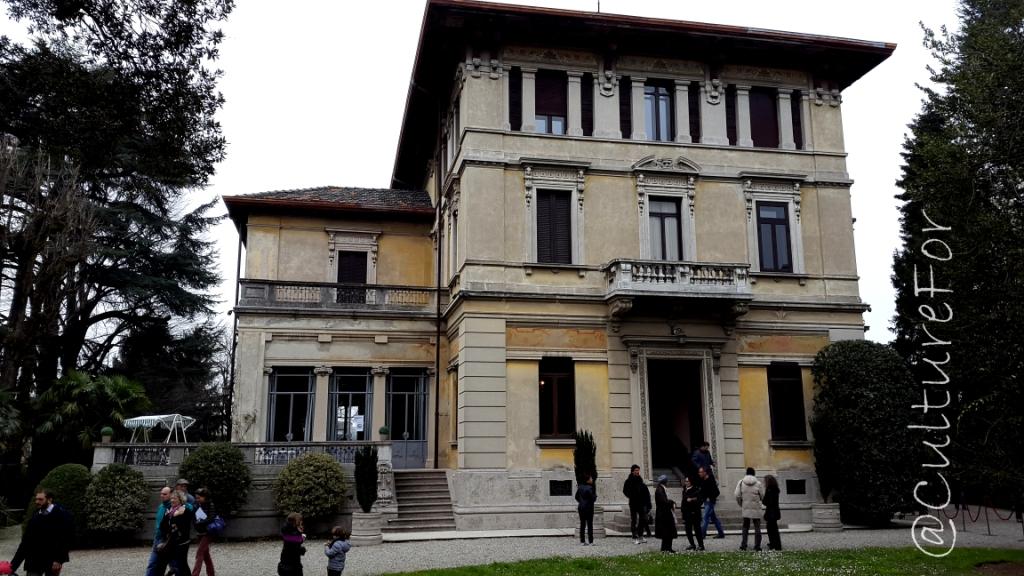 La seconda Villa che abbiamo visitato è stata VILLA AMBROSINI SPINELLA D’AGOSTINO. Si tratta di un edificio davvero molto elegante, progettato nel 1900 dall’architetto Ulisse Stacchini (progettò la stazione centrale di Milano e l’originario stadio Meazza). Da questa villa traspare da ogni parte il suo inconfondibile stile liberty, con i motivi floreali che decorano la struttura dalla portineria sino al corpo centrale. Anch’essa, come Villa de Capitani, è circondata da un bellissimo giardino ma molto più curato e con piante secolari molto particolari. A differenza dell’altra villa, qui siamo riusciti ad entrare al pian terreno vedendo alcune stanze con gli arredi originali, ma non abbiamo potuto scattare fotografie in quanto è abitata.