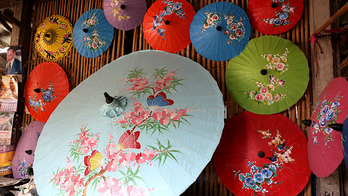 3) Bo Sang Umbrella Village! A soli 30 minuti di macchina da Chiang Mai, si trova il piccola villaggio Bo Sang famoso per la produzione dei ombrellini parasole fatti a mano. Qui potrete lasciarvi affascinare dalle donne che cuciono, colorano e compongono questi bellissimi parasole e cogliere l’occasione per portare a casa con voi un “piccolo” ricordo.