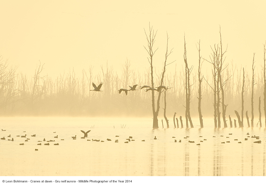 02 _Leon Bohlmann_Gru nell’aurora_Wildlife Photographer of the Year 2014La Fondazione, a sua volta una vera e propria opera d’arte, accosta le grandi sculture di Luciana Matalon a queste incredibili immagini. Sono esposte oltre 100 immagini, hanno partecipato 42.000 fotografi (professionisti e amatoriali) proveniente da 96 paesi.