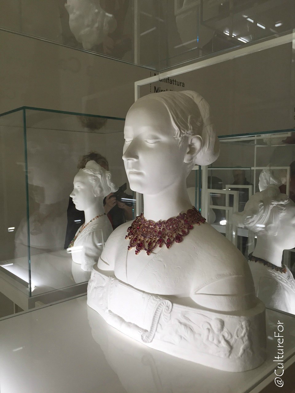 Una mostra dedicata ai gioielli alla Triennale di Milano. Potevo perdermela? Ovviamente no! E quindi, dopo aver visto la mostra Making is Thinking is Making e Neo Preistoria, mi sono spostata verso questa sala dove decine di busti bianchi chiusi in altrettante teche sfoggiavano al collo oltre 50 gioielli italiani, opera di maestri e giovani talenti, di abili artigiani e di maison orafe, espressione dell’alta capacità manifatturiera come della migliore produzione industriale, in una commistione di arte, design, moda e nuove tecnologie.