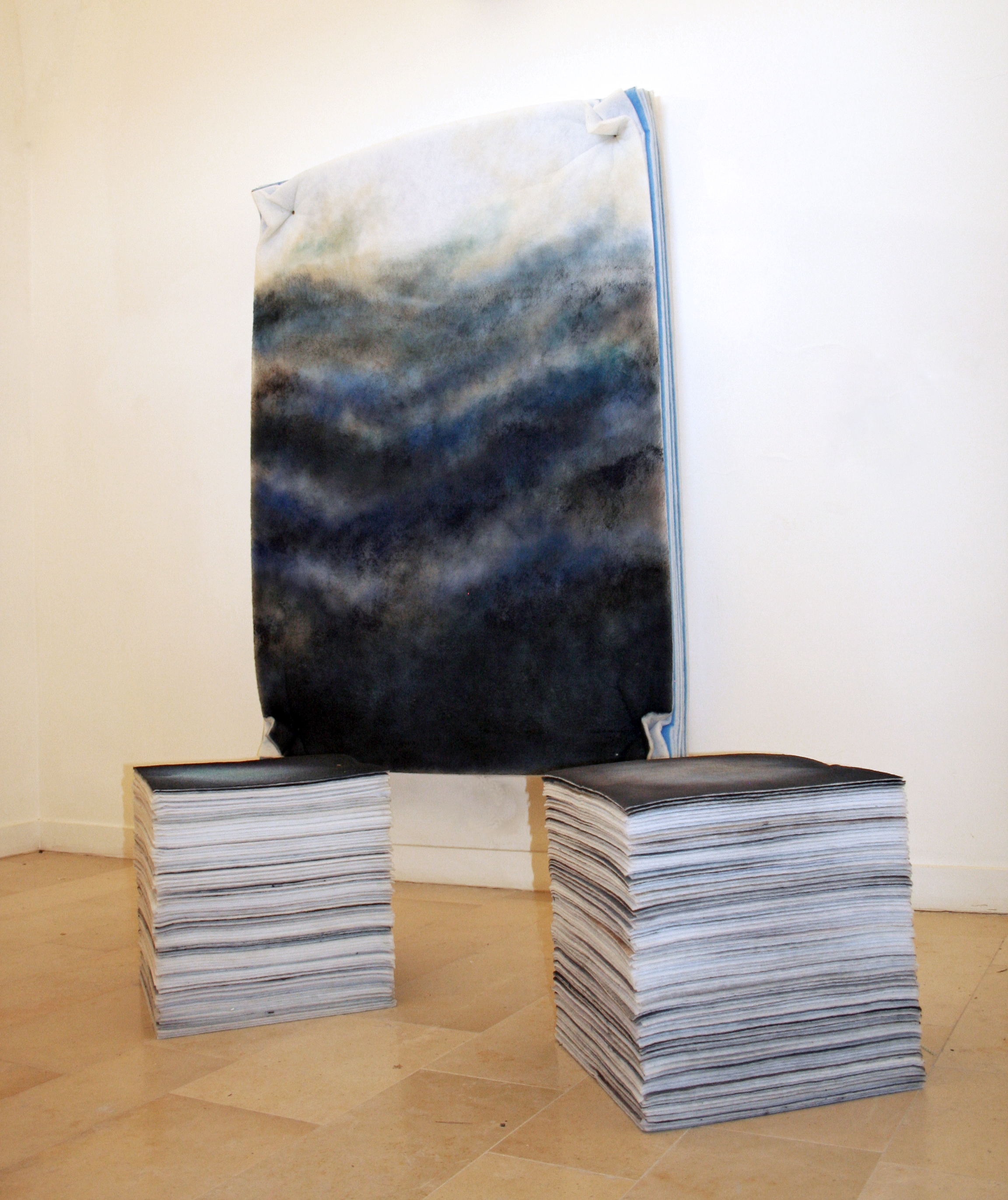 CORINNA GOSMARO_Scape,2015, pittura olio e spray su filtro di poliestere