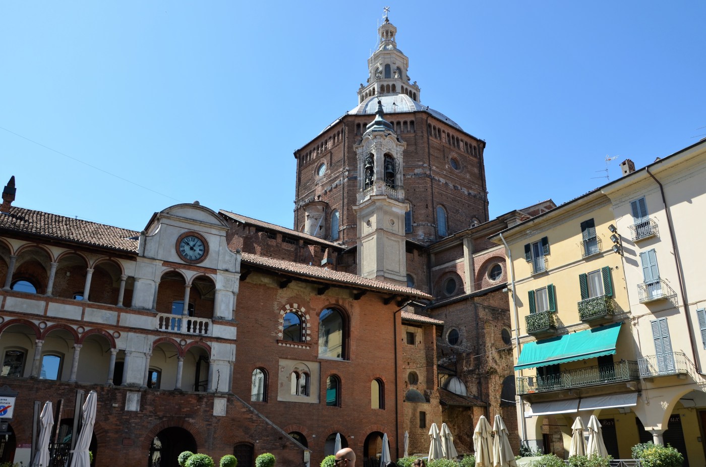 Proseguite verso il centro storico e poi girate a destra, seguendo le indicazioni per il Duomo di Pavia, dedicato a Santo Stefano Martire e Santa Maria Assunta. I lavori per la sua costruzione iniziarono nel XV secolo e ancora oggi non è del tutto completa in quanto mancano i rivestimenti marmorei, in particolare all’interno. Il Bramante ha dato il suo appoggio per realizzare il progetto iniziale e alcuni documenti del 1488 testimoniano la presenza dell’architetto sul cantiere.