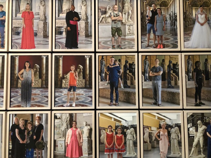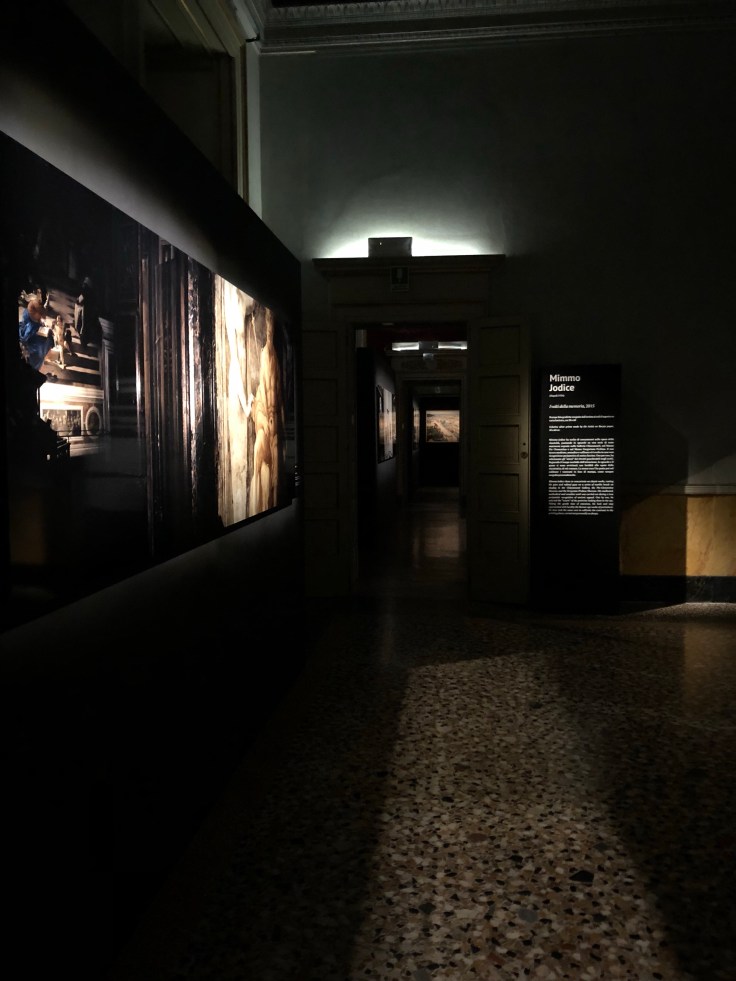 I lavori che mi hanno colpito più di tutti sono quelli di Mimmo e Francesco Jodice: il primo ha ritratto i volti del passato, presentando le teste in pietra, marmo e gesso con un gioco di luci che definisce ogni dettaglio, il secondo invece ha ritratto i volti di oggi immortalando i visitatori in pose statiche durante la loro visita, all’interno delle sale dei musei.