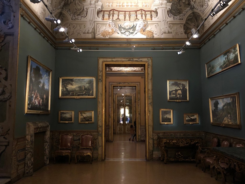 ..mentre l’allestimento dei dipinti è impostato ancora come nel Tardo Settecento, come testimoniato da un manoscritto del 1767. Ciò permette ai visitatori di rivivere l’atmosfera e lo stupore degli ospiti del XVIII secolo.