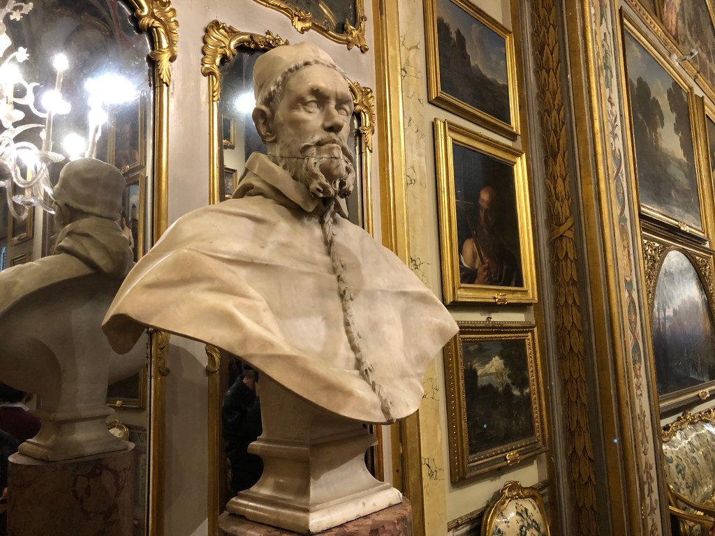 Tra le opere più famose che si trovano nelle sale del palazzo c’è sicuramente il Ritratto di Papa Innocenzo X (“fondatore” del palazzo e della collezione) realizzato da Velazquez: questo quadro è così famoso perchè rappresentava il Papa con il suo vero aspetto, caratterizzato da uno sguardo diffidente, a differenza di precedenti opere simili dove l’artista faceva di tutto per idealizzare la figura papale.