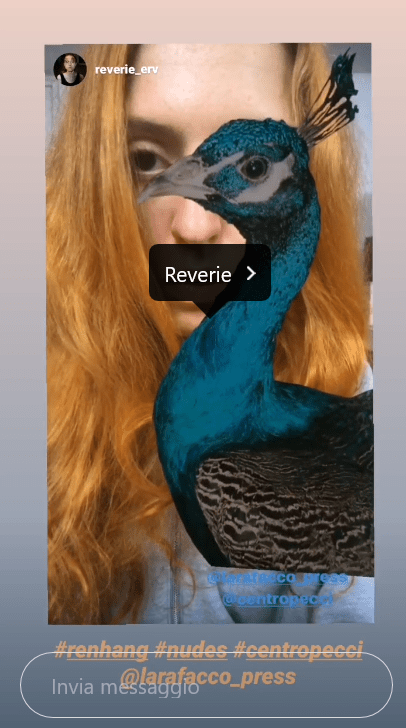 Proprio pochi giorni fa, il Centro Luigi Pecci di Prato, in occasione della mostra dedicata al fotografo cinese Ren Hang, ha lanciato sul suo profilo Instagram un filtro ispirato a una delle fotografie più famose di Hang: Peacock (Pavone)